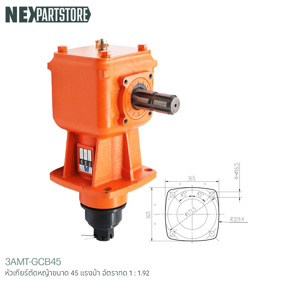 สินค้า: หัวเกียร์เครื่องตัดหญ้า แบรนด์ AMT ขนาด 30-45 แรงม้า อัตราทด 1:1.92