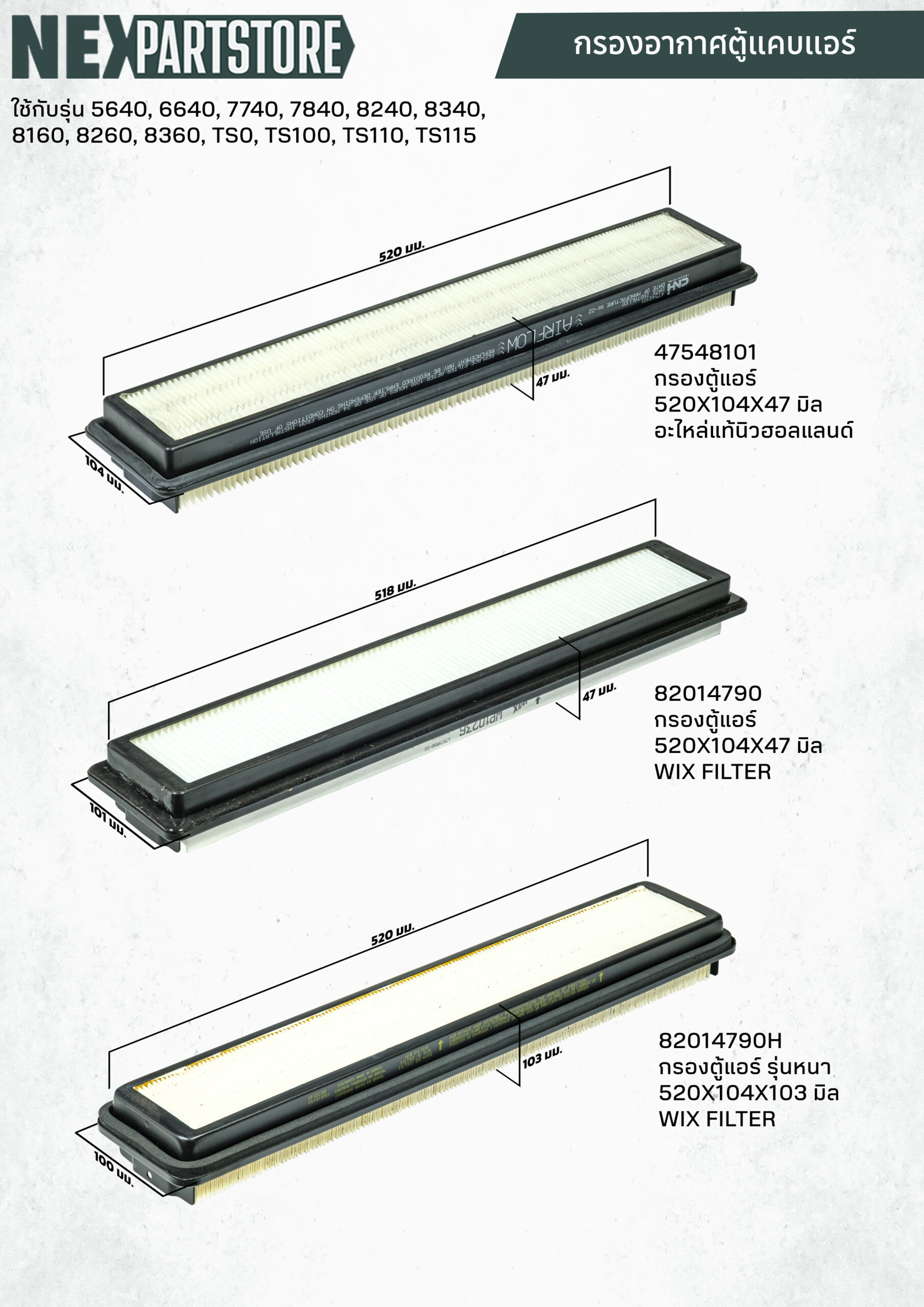 สินค้า: กรองอากาศตู้แค็บแอร์ สำหรับ รถไถ แทรกเตอร์ ฟอร์ด นิวฮอลแลนด์ รุ่น 5640 6640 7740 7840 8240 8340 TS90 TS100 TS110 TS115 8160 8260 8360